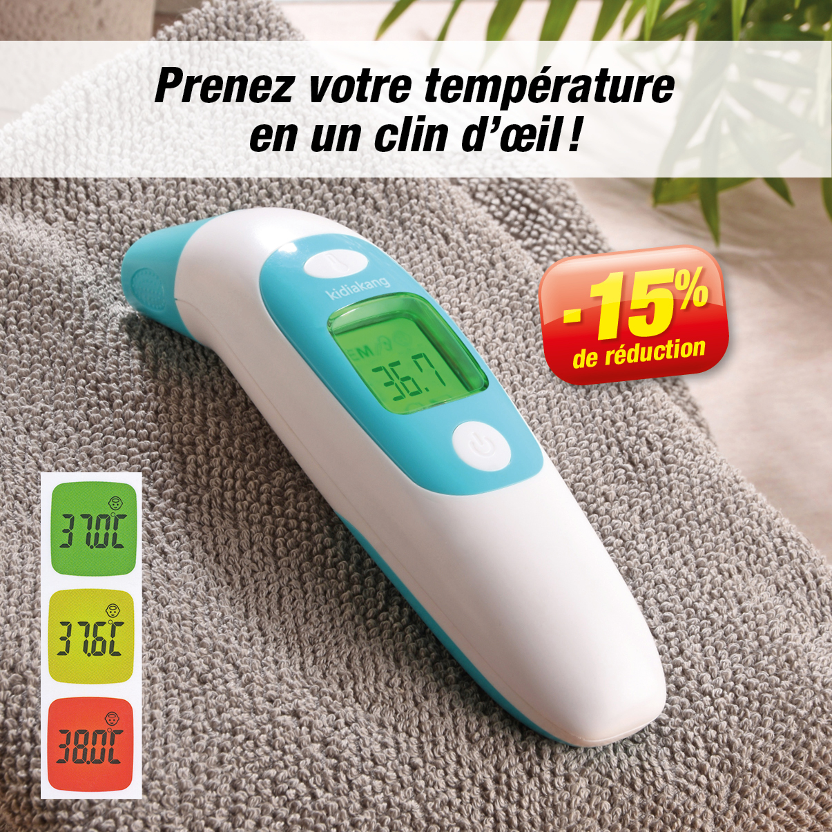 Prenez votre température en un clin d’œil ! Pratique, vous avez la possibilité de prendre la température soit en le positionnant sur le front ou en glissant le bout de l’appareil dans l’oreille grâce à son embout spécifique. Très simple d’utilisation.